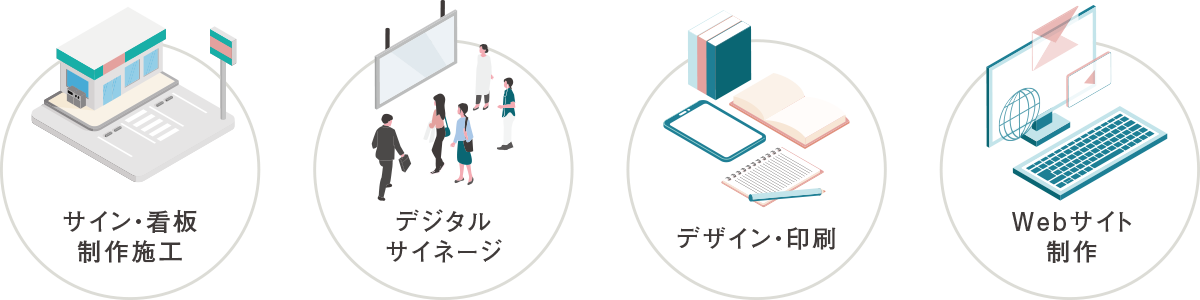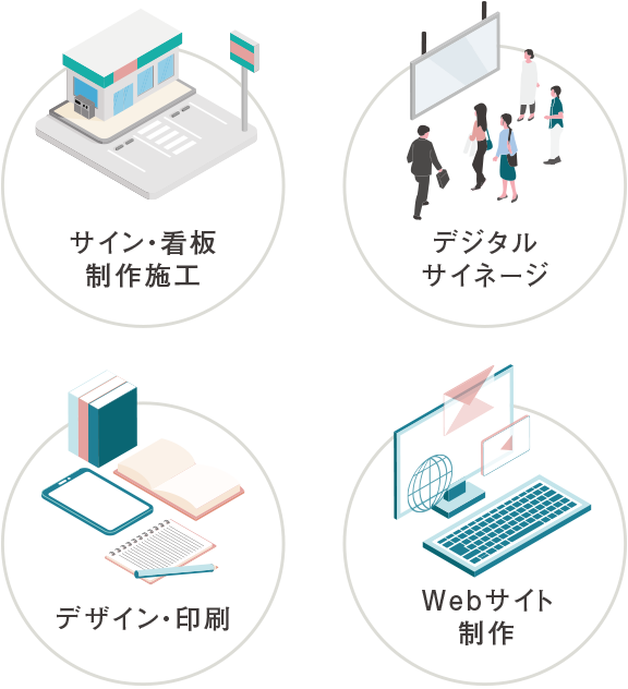| 事業内容 | サイン・屋外広告看板の企画・デザイン・制作・施工・メンテナンス デジタルサイネージの販売・設置・コンテンツ制作 グラフィックデザイン・各種印刷物の制作 Webサイト制作、運営サポート 各種販促物の企画・制作 |